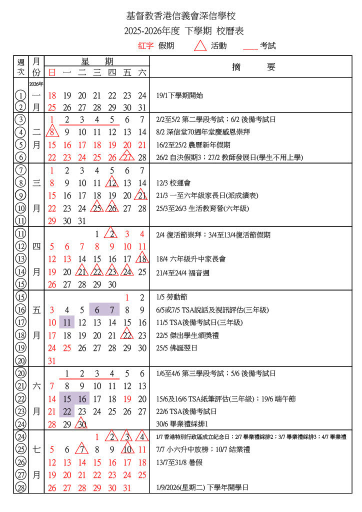 校曆表