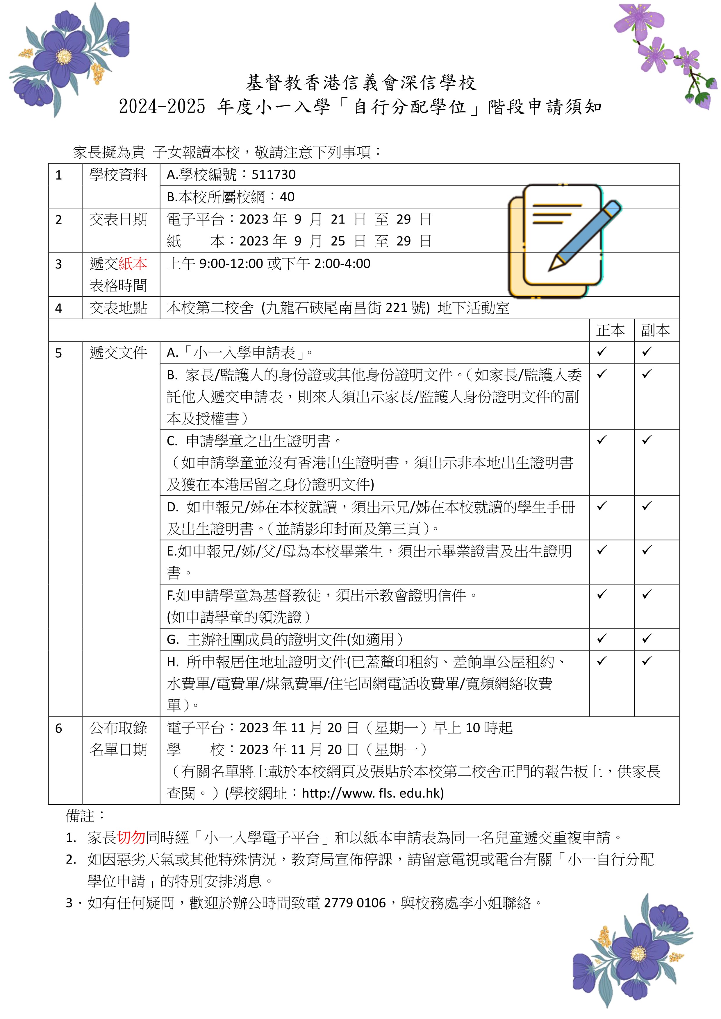 小一自行分配學位備忘
