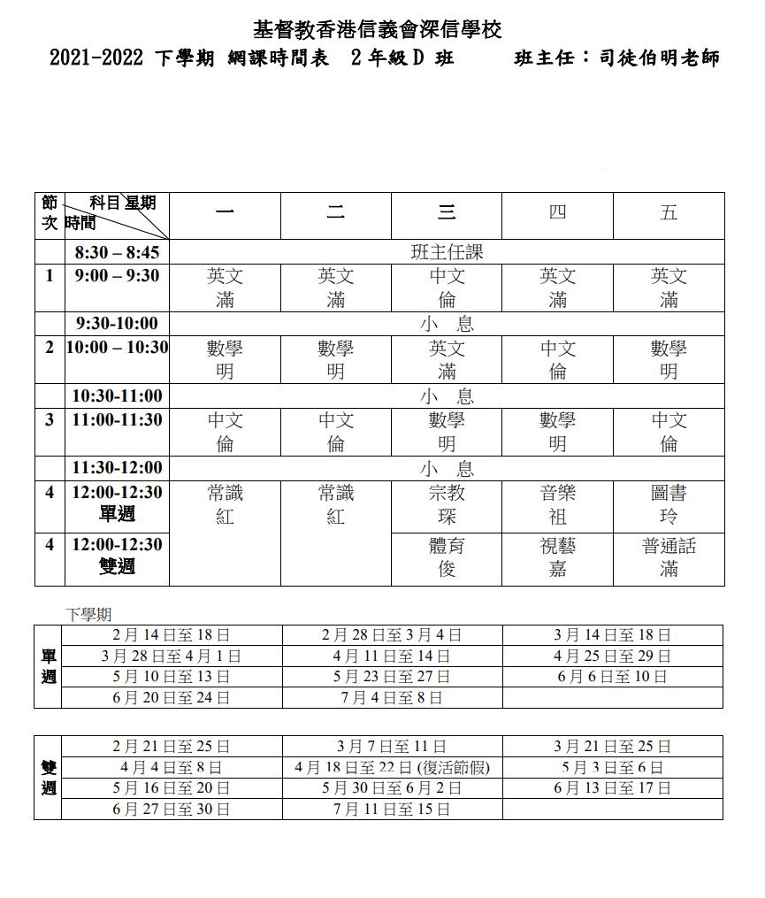 2021-2022_下學期_網課時間表_2D