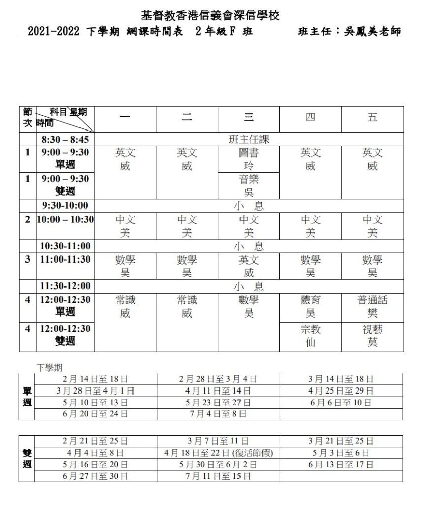 2021-2022_下學期_網課時間表_2F