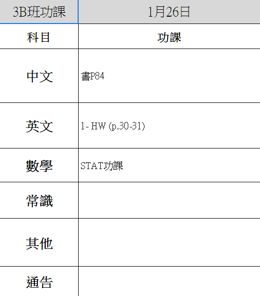 上課時間表