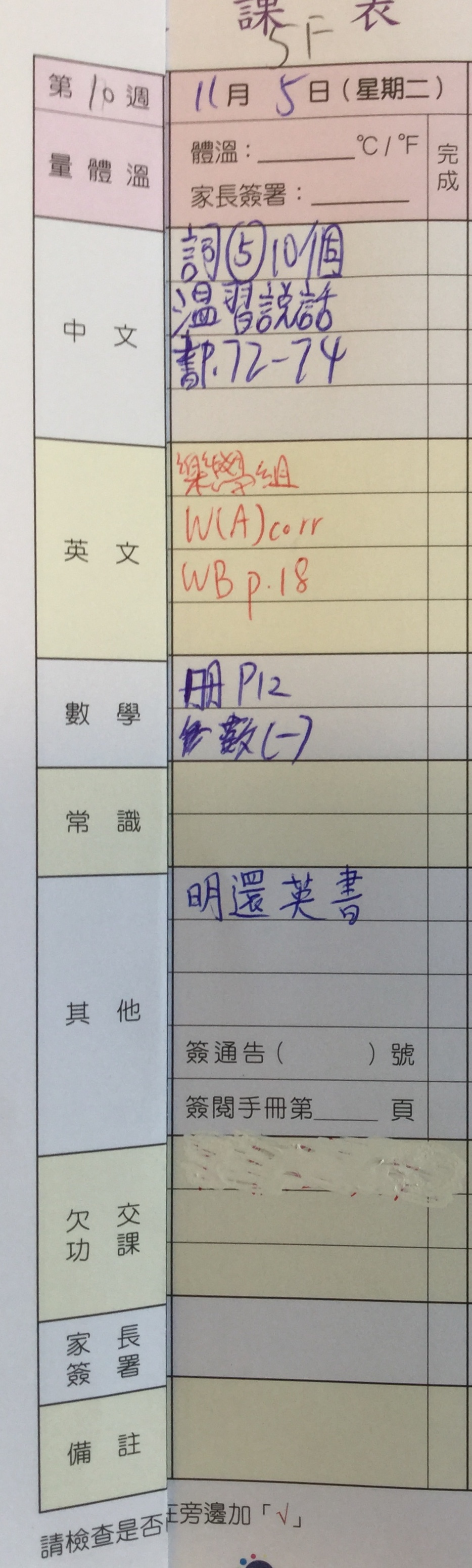 上課時間表