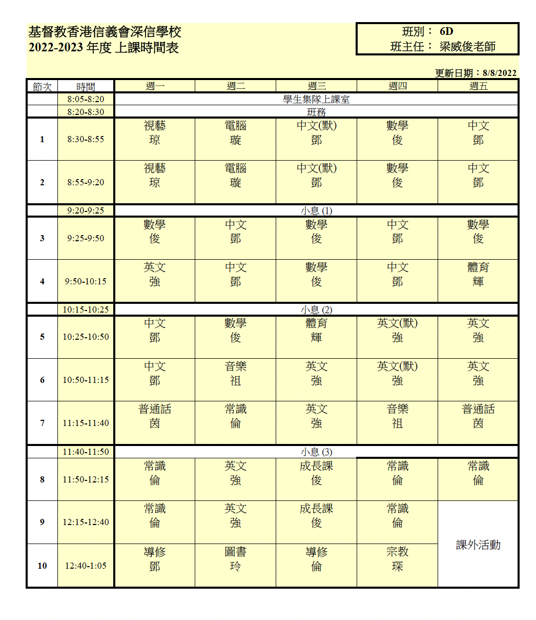 上課時間表