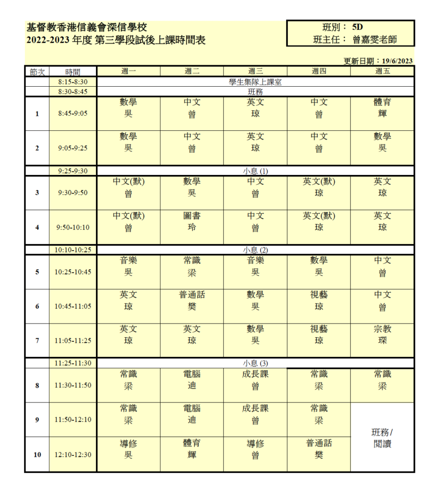 上課時間表