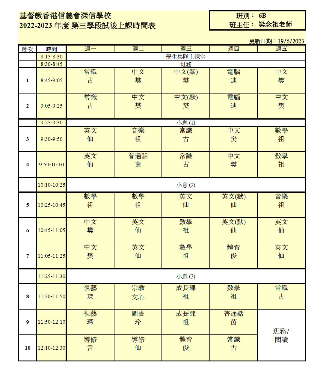上課時間表