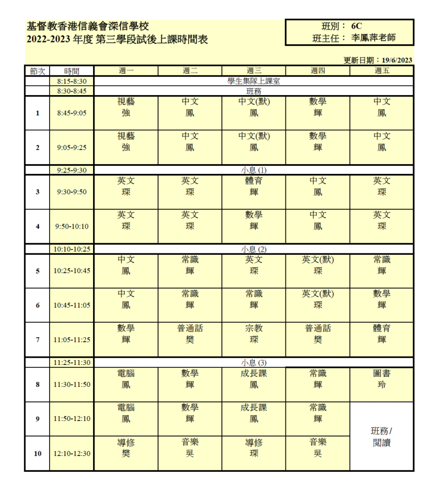 上課時間表