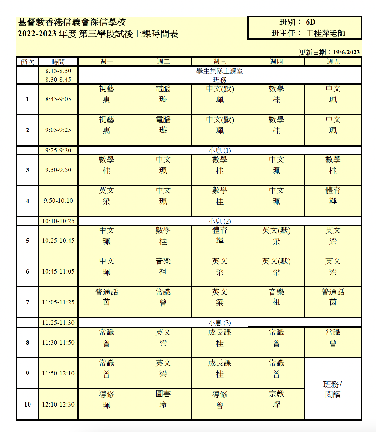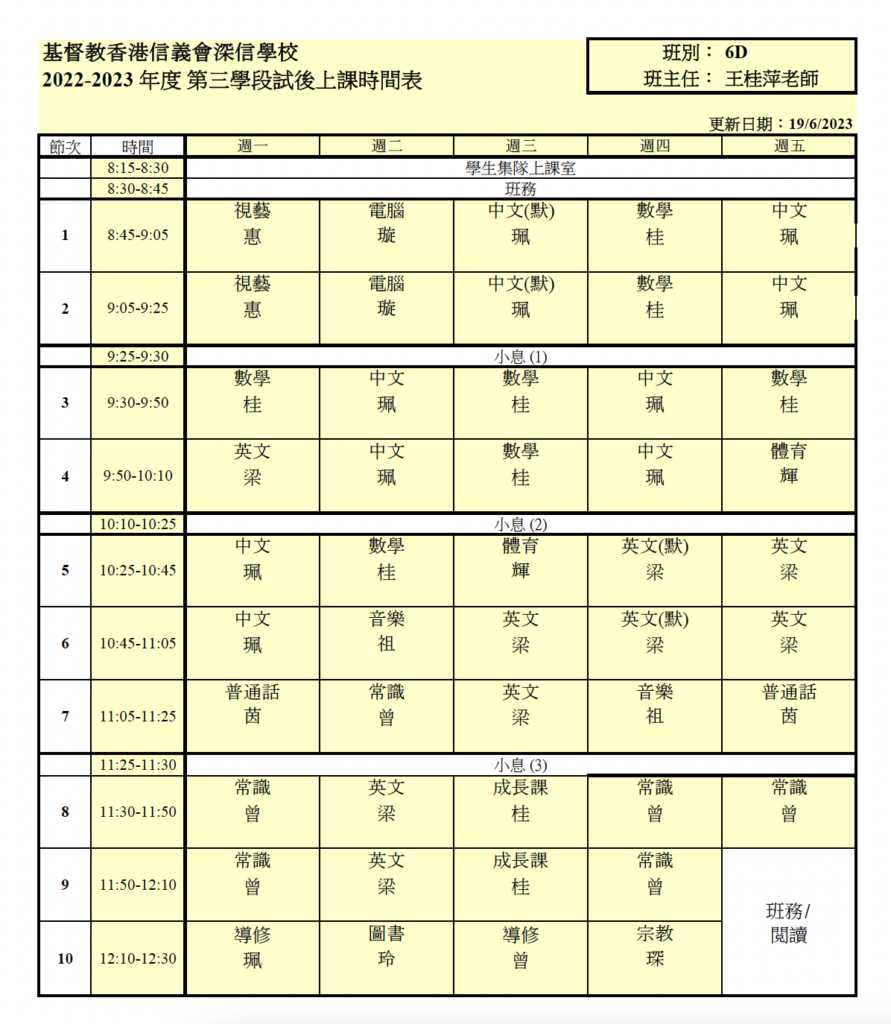 上課時間表