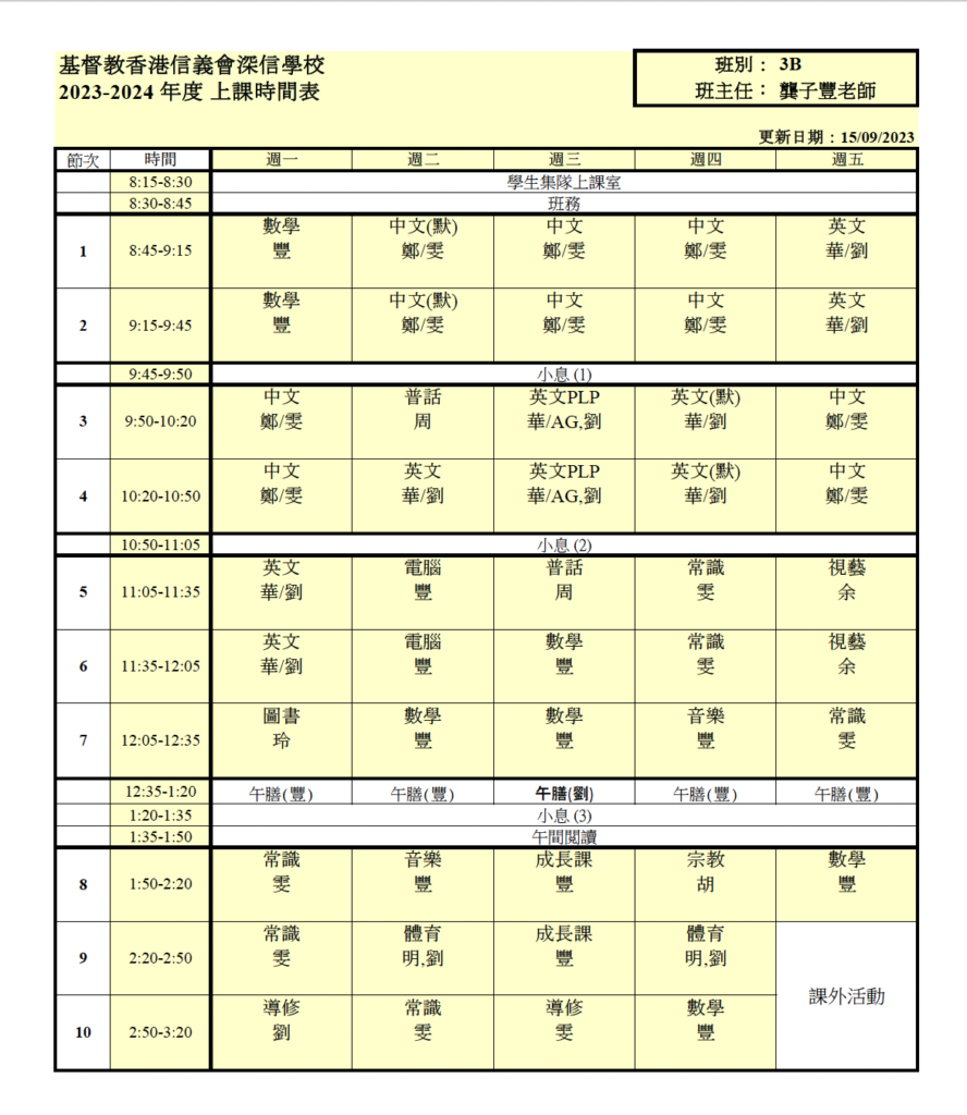 上課時間表
