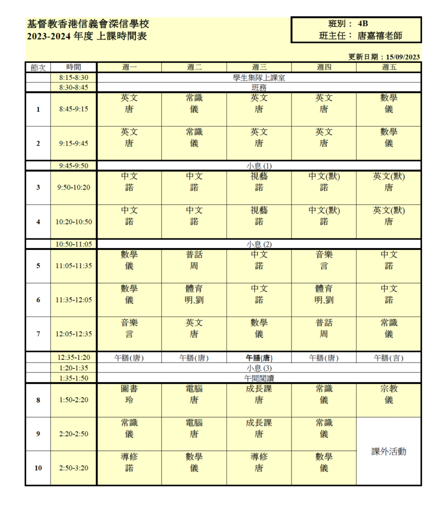 上課時間表